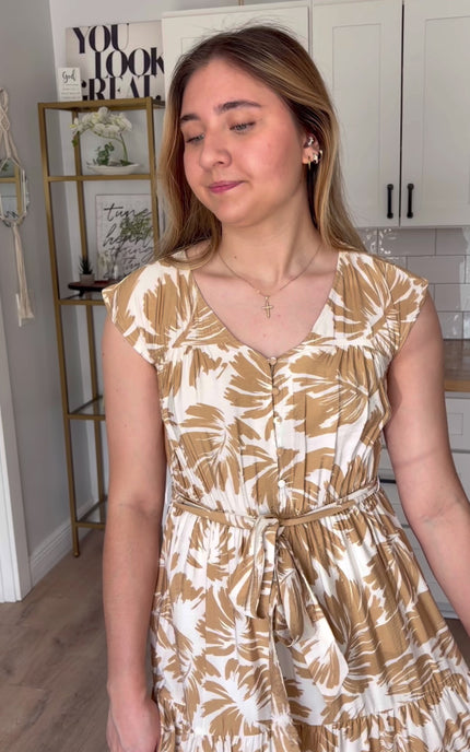 The golden sand tone — a warm, sun-kissed neutral with subtle depth — makes this piece endlessly versatile. The removable waist belt allows you to define the silhouette or wear it relaxed for a softer look.